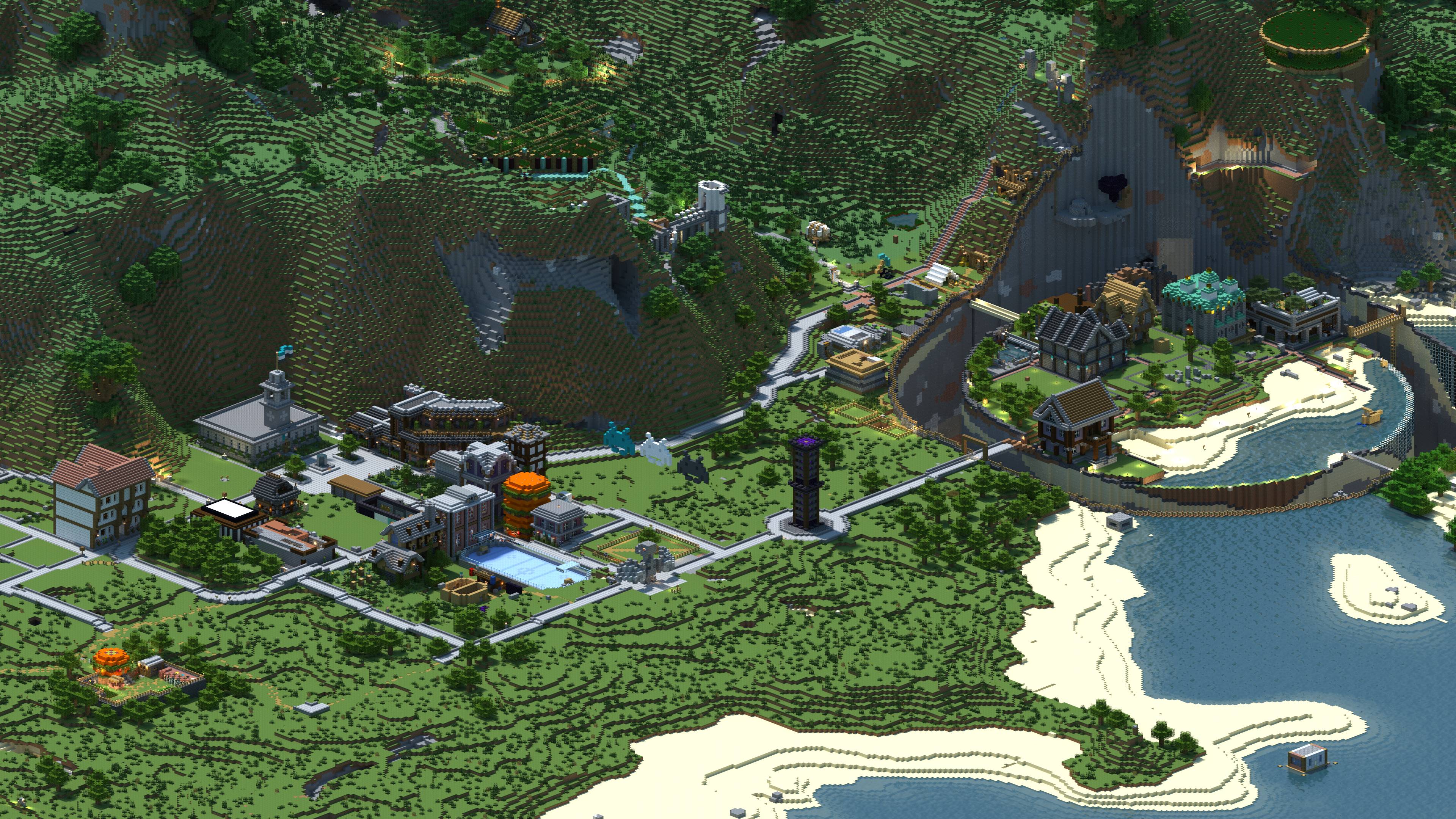 This week’s featured image is of the Free Danzilonan Republic, with both apsects of their town pictured in the render. On the left is the old town, hosting the town hall, defense ministry and the hockey stadium (go NDZHL!) and on the right is the DanzShaft, featuring a large moat diving to bedrock; while still in development, it’s reminiscent of a proto-version of Victoria in the Commonwealth and New Yoahtl City in CivClassic.